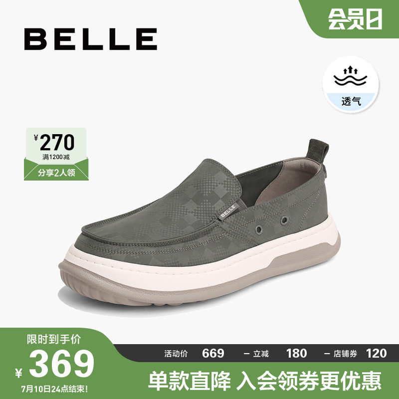 券 120元销量200百丽透气帆布鞋男士2023夏季新款轻便一脚蹬男鞋休闲板鞋A1113BM3