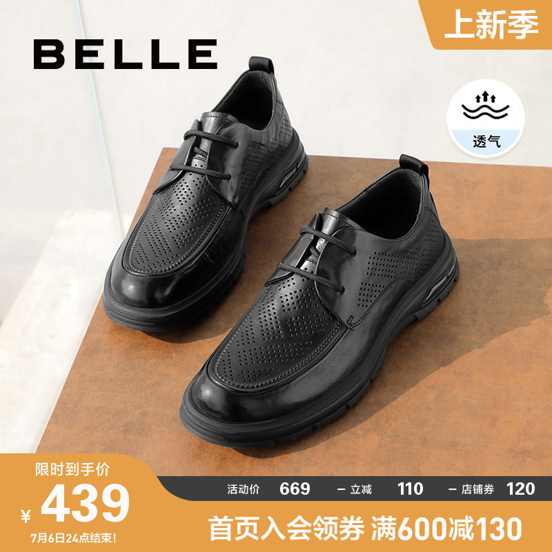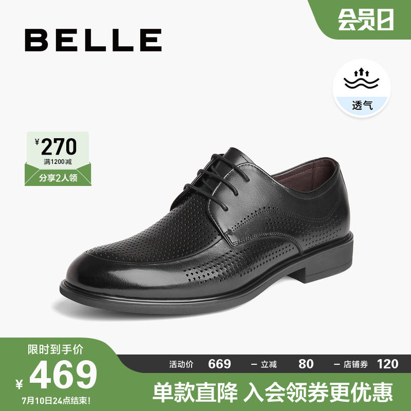 券 120元销量200百丽打孔透气正装皮鞋夏季男2023新款真皮通勤商务皮鞋子A1105BM3