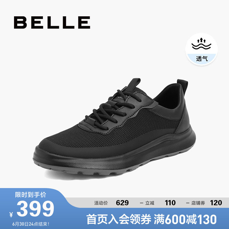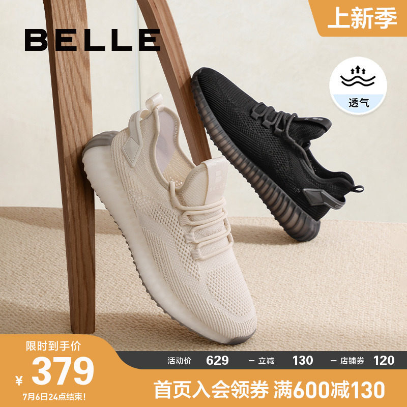 券 120元销量700百丽男鞋夏季透气飞织网面2023新款运动风休闲鞋男款轻便A1055AM3