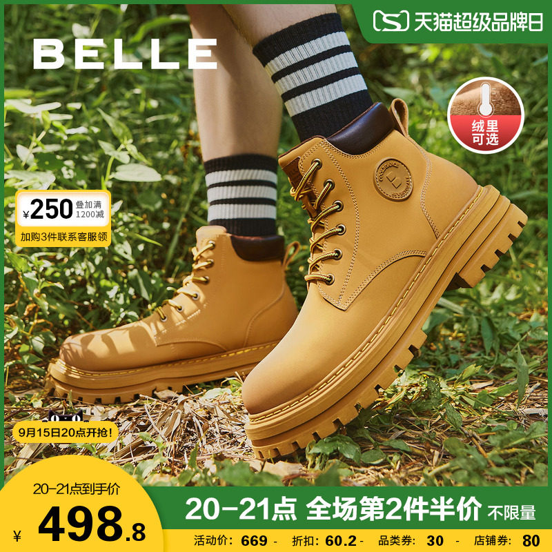 券 100元销量100百丽大黄靴男22冬新商场同款高帮厚底户外马丁短靴工装靴7TW01DD2