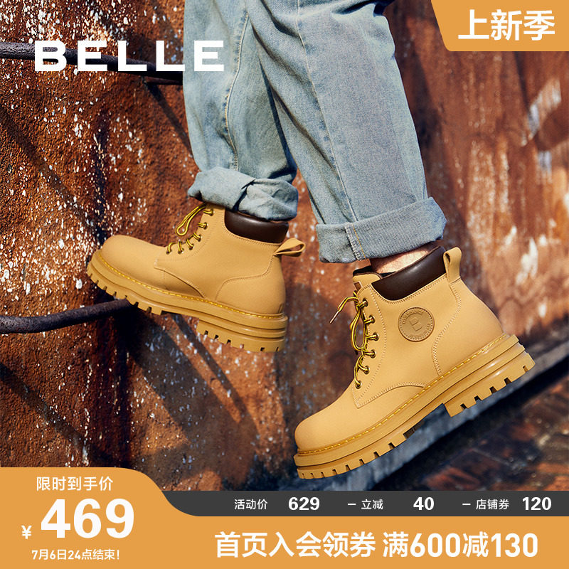 券 120元销量38百丽时尚大黄靴夏季商场同款工装马丁短靴子男女同款潮流7TW01DD2