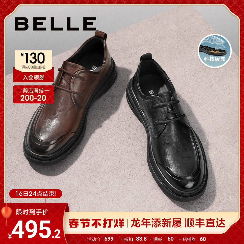 券 60元销量500百丽男鞋冬季商务皮鞋男款2024新款头层牛皮增高休闲皮鞋A1365AM4