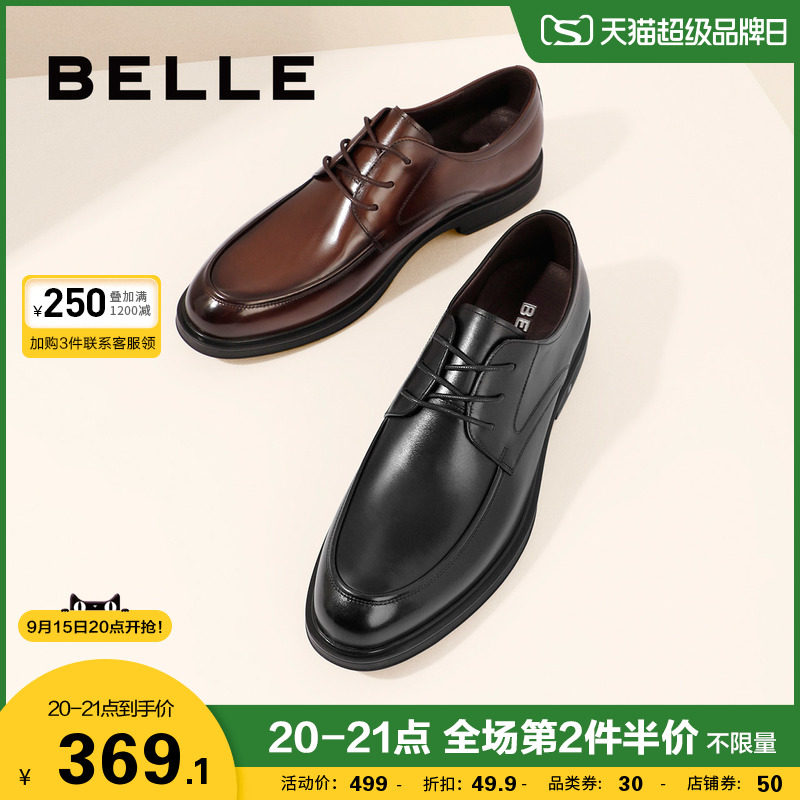 券 50元销量300百丽商务正装皮鞋男秋季新牛皮通勤结婚棕色真皮德比皮鞋B3GK3CM1