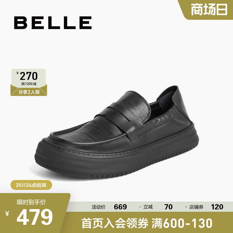 券 60元销量50百丽男鞋秋冬款2024新款一脚蹬休闲皮鞋男套脚豆豆乐福鞋A1368AM4