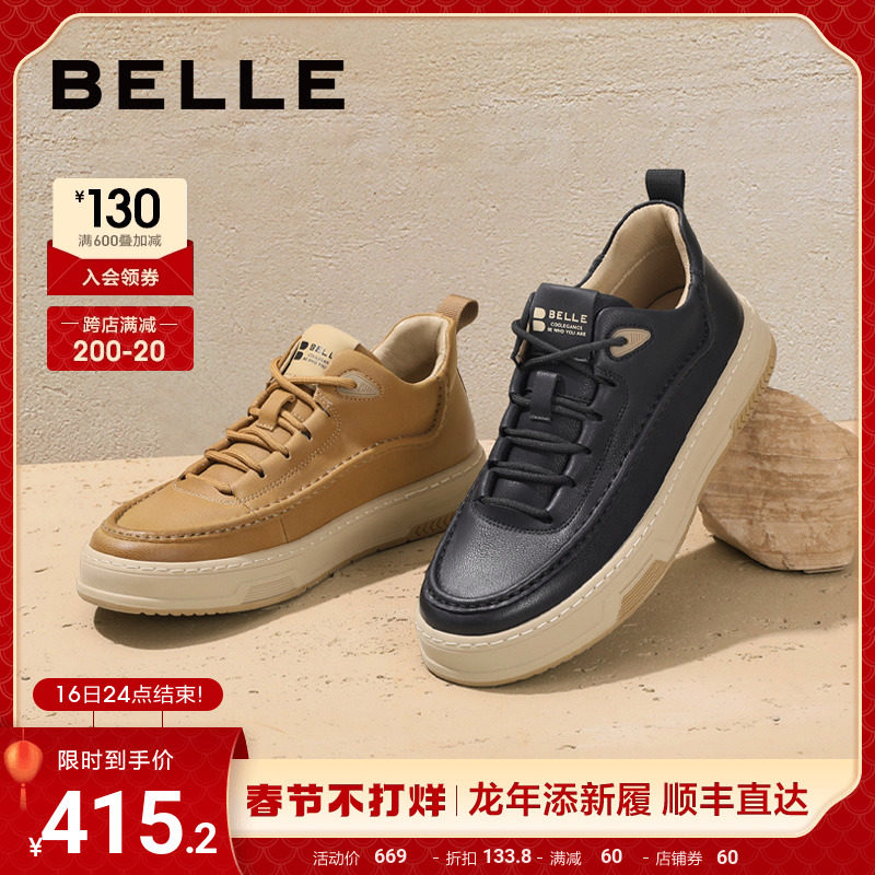 券 60元销量100百丽男鞋休闲真皮小白鞋男士新款黑白运动鞋厚底增高板鞋A0615AM2