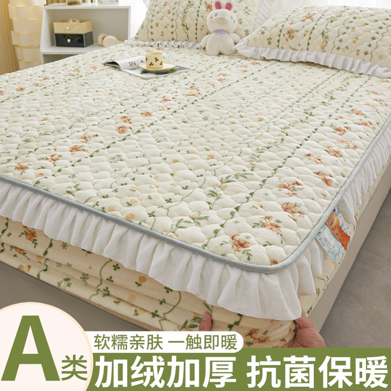 券 20元销量10牛奶珊瑚绒花边床笠冬季加厚加绒床单套床垫保护罩三件套2023新款