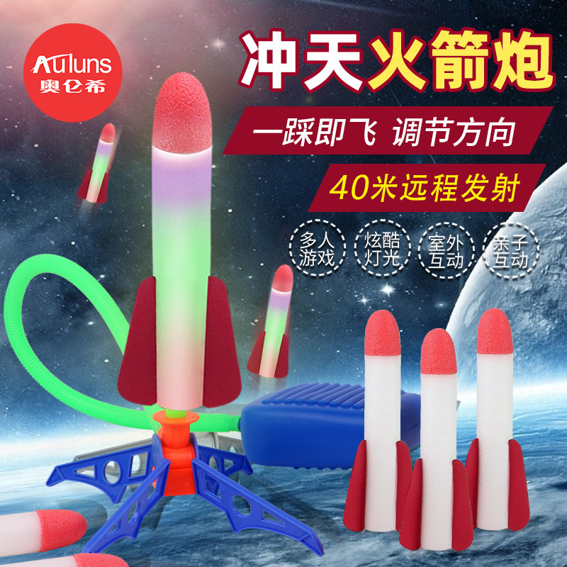 券 3元销量100儿童脚踩冲天小飞箭户外踩踏飞天发射火箭玩具男孩弹射闪光飞机枪