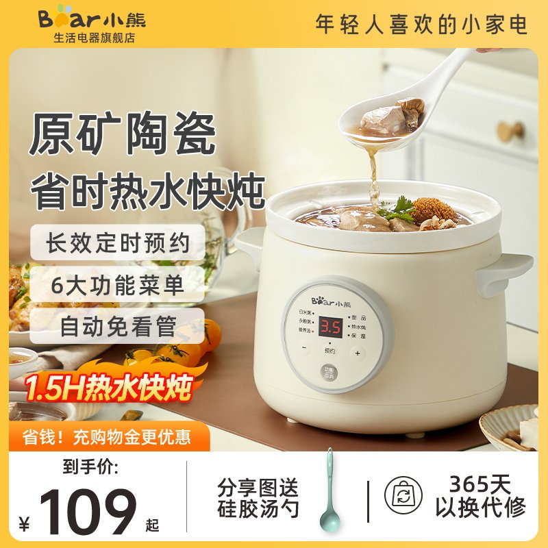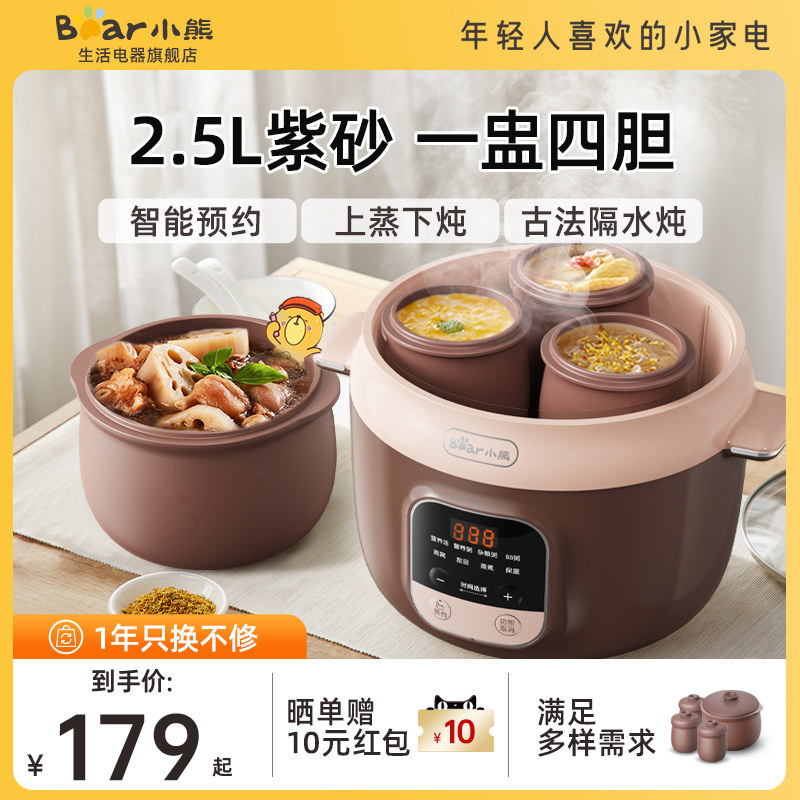 券 30元销量400小熊紫砂锅煲汤锅隔水炖盅家用全自动大容量电炖锅多功能官方旗舰