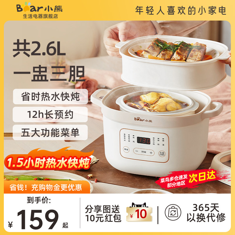 券 50元销量48小熊电炖锅煲汤锅炖盅隔水炖家用炖汤电砂锅全自动紫砂锅煮粥神器