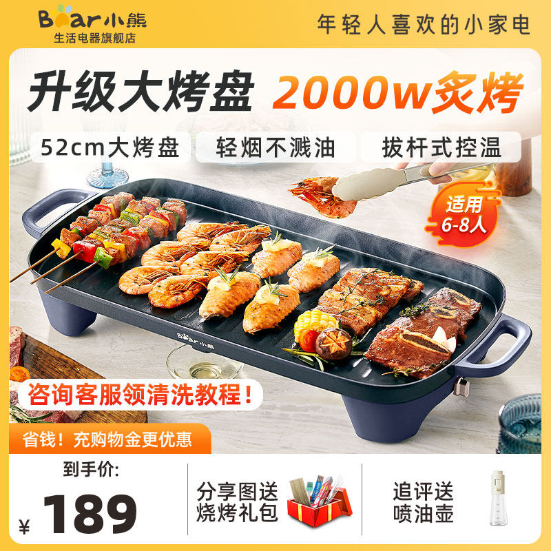 券 250元销量100小熊烤肉电烤盘无烟室内家用不粘电烤炉煎烤肉锅户外专用烧烤盘