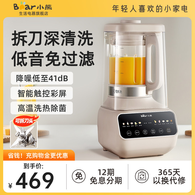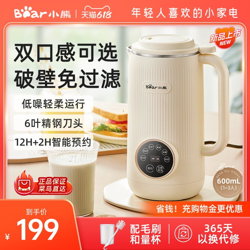 券 30元销量37小熊可拆洗低音破壁机家用加热全自动多功能辅食料理机豆浆机新款
