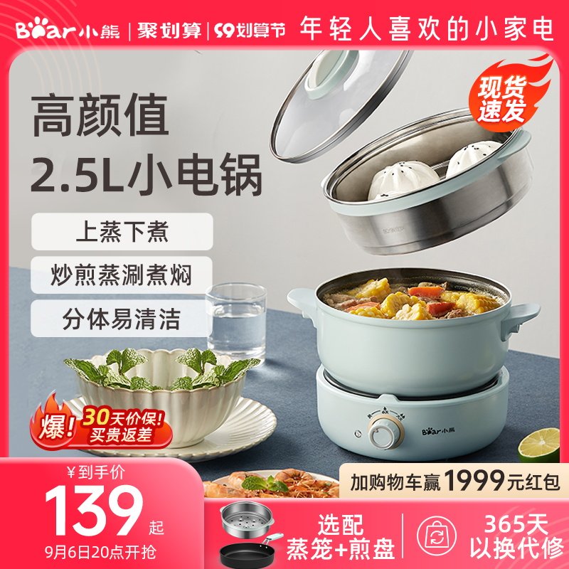 券 70元销量3000小熊电煮锅多功能家用分体式学生宿舍小型电热火锅一体蒸煮炒电锅