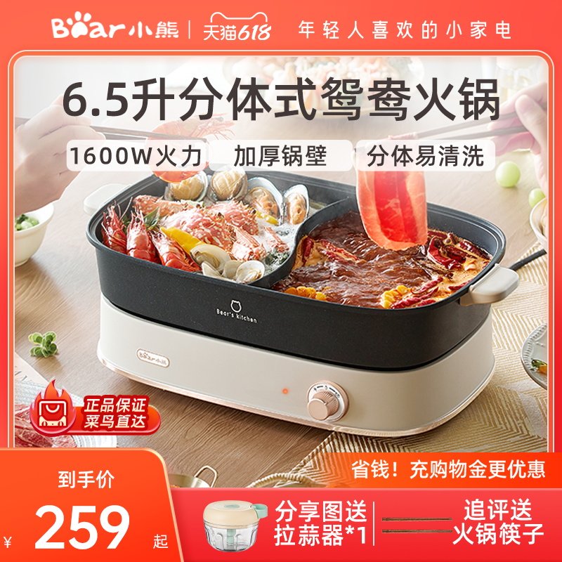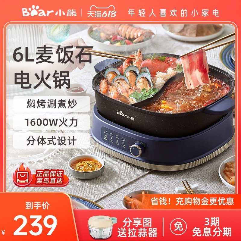 券 180元销量100小熊电火锅家用锅分体式多功能大容量电煮锅电热锅嘻哈锅鸳鸯锅