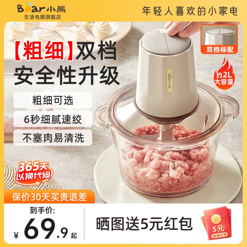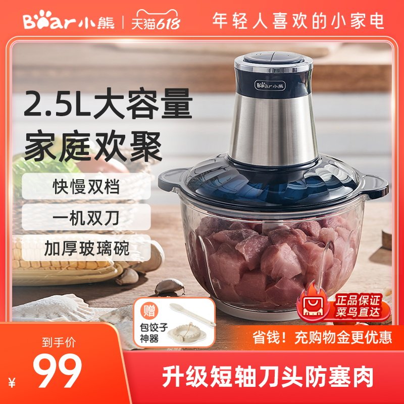券 170元销量62小熊绞肉馅机家用小全自动大功率电动多功能碎肉不锈钢搅拌料理机