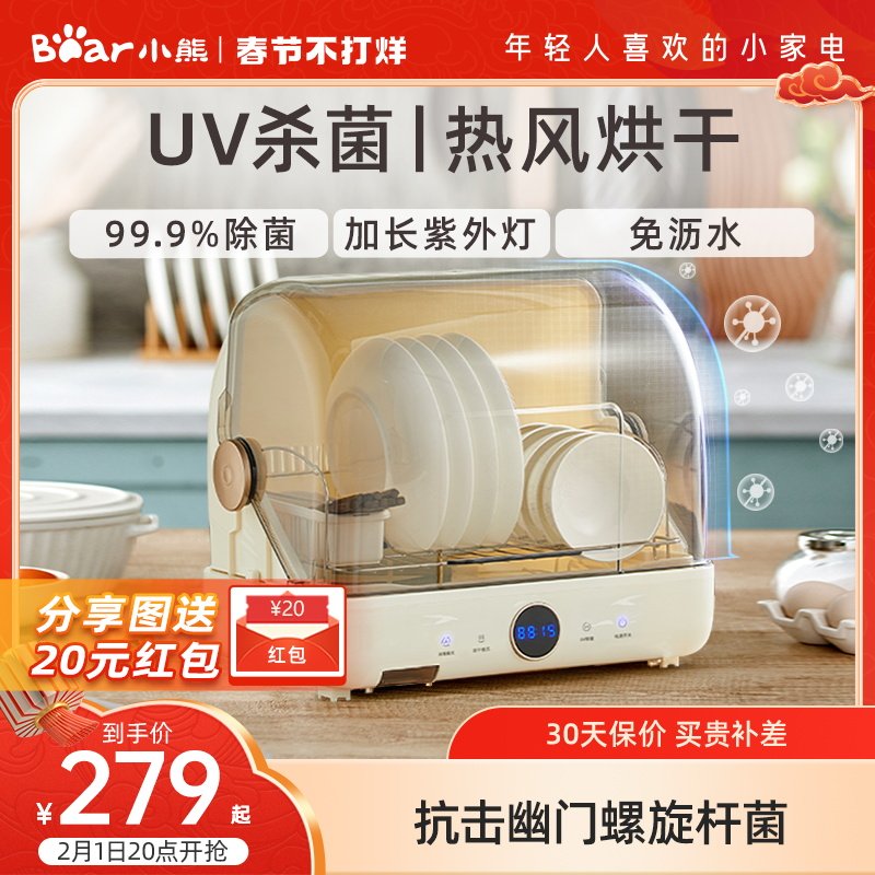券 30元销量61小熊多功能婴儿奶瓶消毒柜家用小型碗筷台式烘干一体紫外线消毒机