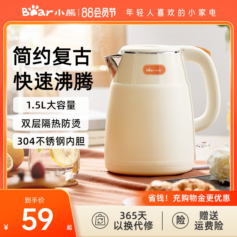 券 30元销量31小熊电热水壶家用烧水壶宿舍非保温不锈钢自动断电煮水开水热水壶