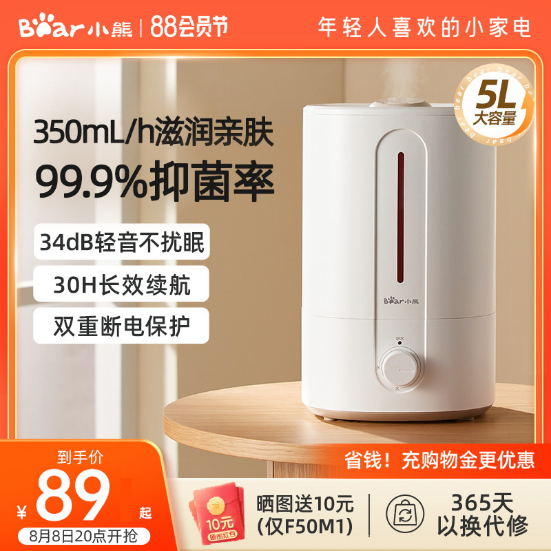 券 20元销量200小熊加湿器家用静轻音卧室孕妇婴儿空调大雾量小型净化加湿一体机