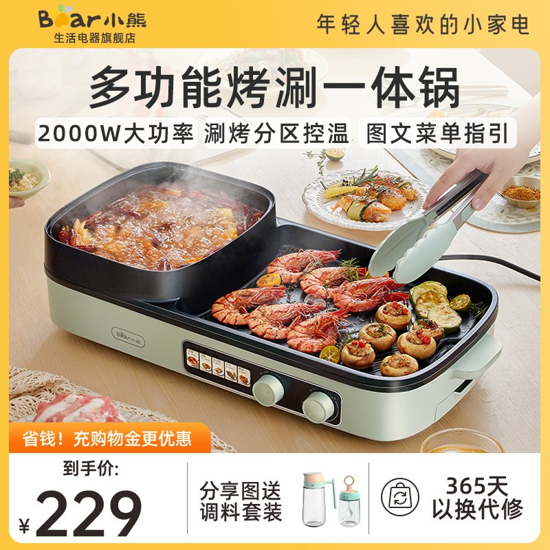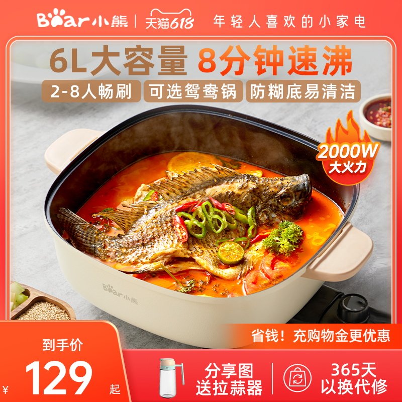 券 30元销量33小熊电火锅鸳鸯锅家用多功能电煮锅一体式电热锅电炒锅炒菜不粘锅