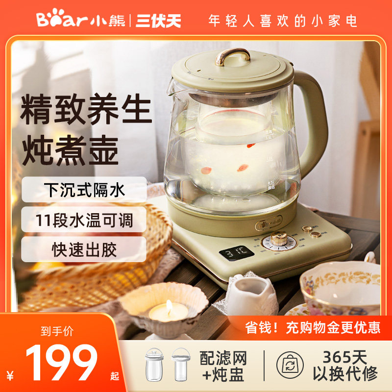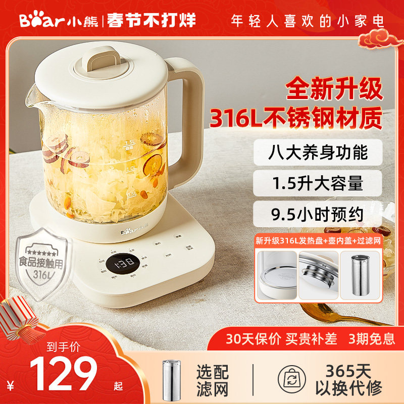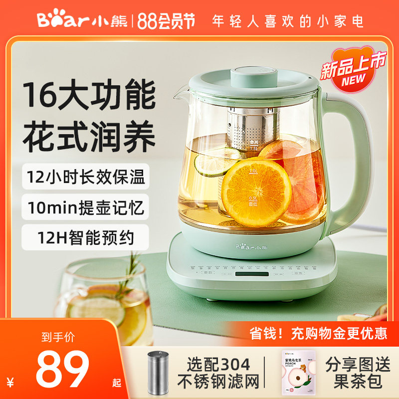 券 20元销量10000小熊养生壶家用多功能恒温煮茶器办公室小型茶壶花茶煮茶壶烧水壶
