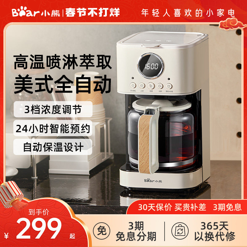 券 50元销量100小熊咖啡机小型家用办公室半自动滴滤美式黑咖啡机煮茶泡茶一体机