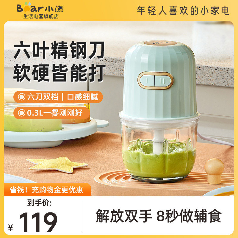 券 60元销量100小熊辅食机婴儿料理机搅拌机婴幼儿宝宝专用家用小型绞肉机打泥机