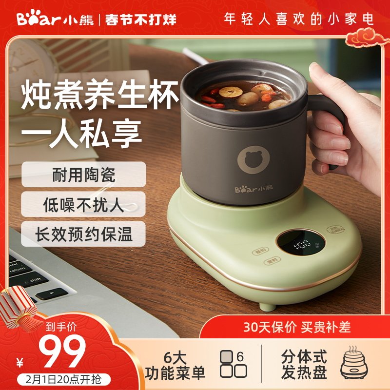 券 30元销量100小熊电炖杯炖锅养生杯迷你多功能炖汤煮粥煮茶办公室一人电热杯