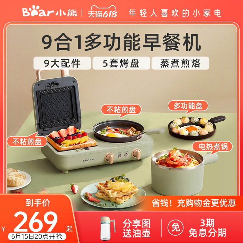 券 170元销量29小熊三明治早餐机家用小型懒人轻食机多功能四合一压烤面包机神器