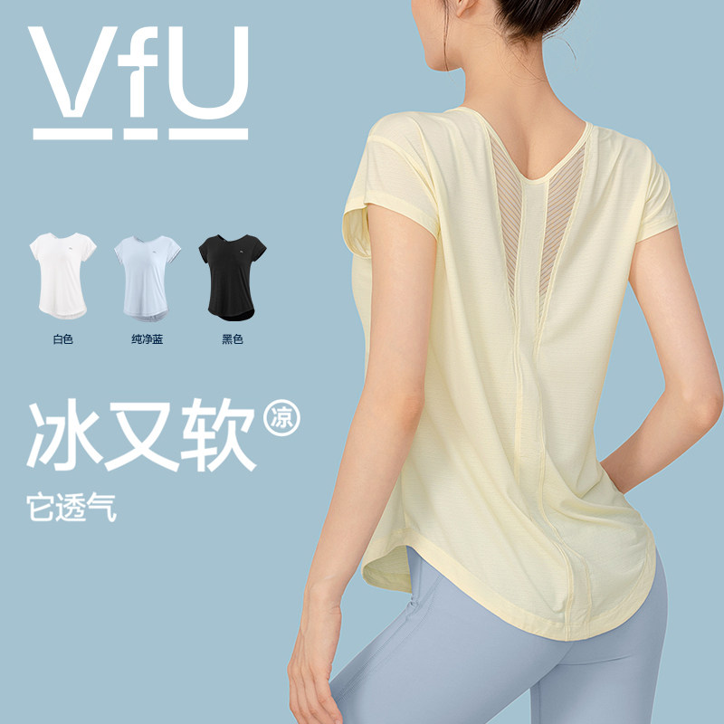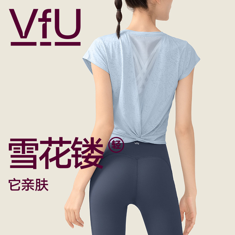 券 50元销量500VfU短款美背运动上衣女网纱短袖t恤健身跑步罩衫高级感瑜伽服夏季